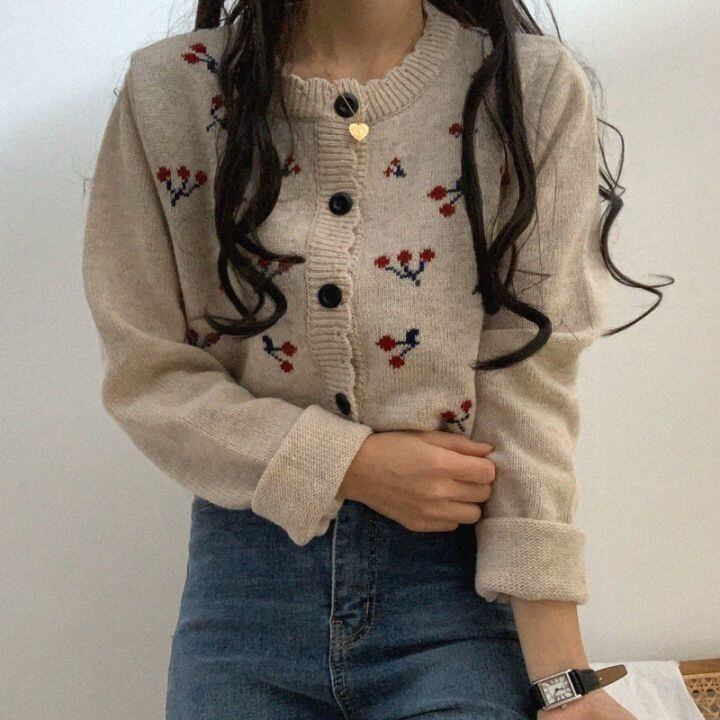 【送料無料】レディース カーディガン セーター 長袖 ニット チェリー 大人可愛い ママコーデ ママファッション 韓国 オルチャンファッション 人気 トレンド 新作 20代 30代 40代 きれいめ レトロ シンプル 無地 定番 お出かけ デート おしゃれ 通勤 通学 オフィス OL デイリー 普段着 ラフ カジュアル フェミニン シック ゆったり 体型カバー 着痩せ 着回し インスタ映え 秋 冬 春 CO1985