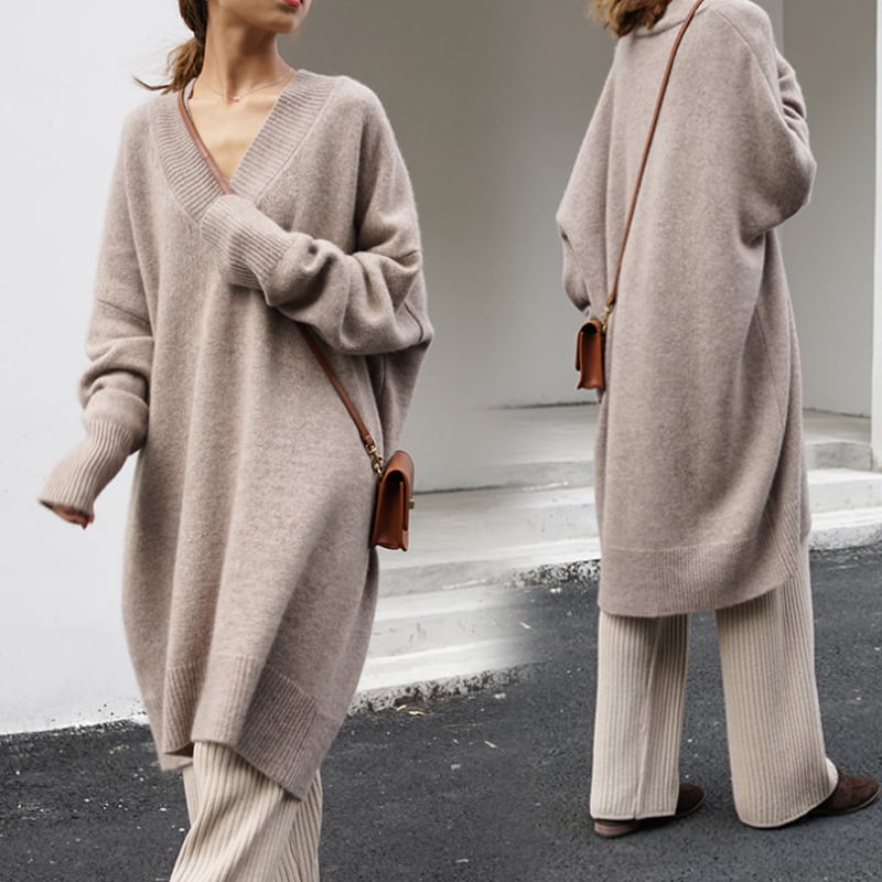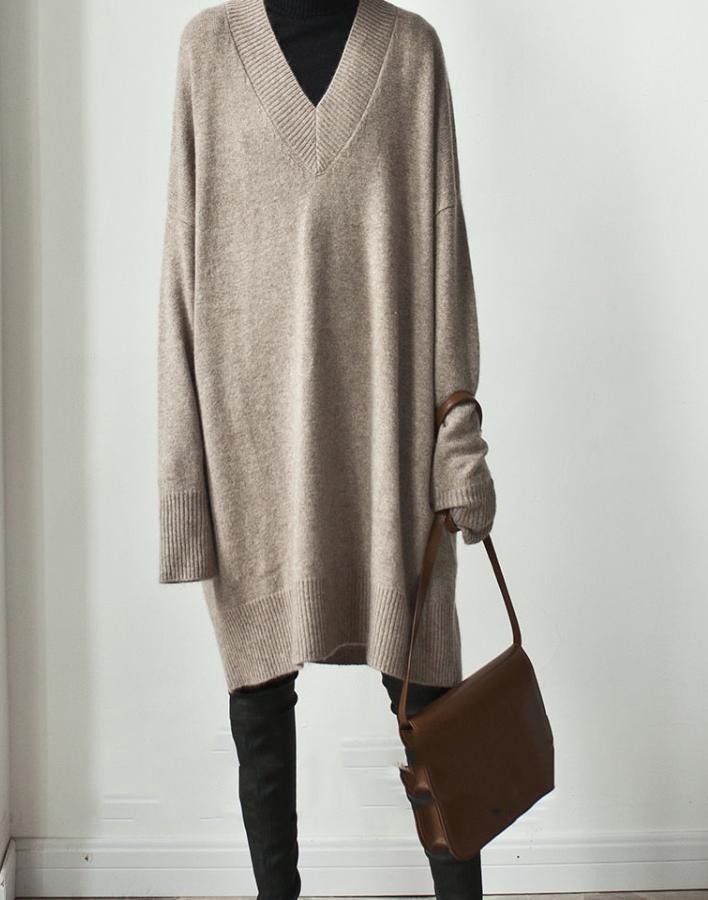 【送料無料】レディース ニット セーター ロング丈 長袖 ゆるかわ オーバー Vネック ワンピース 大人可愛い ママコーデ ママファッション 韓国 オルチャンファッション 人気 トレンド 新作 20代 30代 40代 きれいめ レトロ シンプル 無地 定番 お出かけ デート おしゃれ 通勤 通学 オフィス OL デイリー 普段着 ラフ カジュアル フェミニン シック ゆったり 体型カバー 着痩せ 着回し インスタ映え 秋 冬 春 CO1994