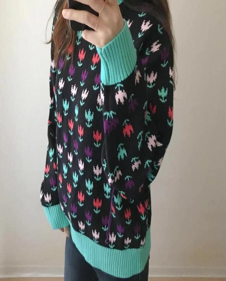 【送料無料】レディース セーター ニット ルーズラウンド 花柄 大人可愛い ママコーデ ママファッション 韓国 オルチャンファッション 人気 トレンド 新作 20代 30代 40代 きれいめ レトロ シンプル 無地 定番 お出かけ デート おしゃれ 通勤 通学 オフィス OL デイリー 普段着 ラフ カジュアル フェミニン シック ゆったり 体型カバー 着痩せ 着回し インスタ映え 秋 冬 春 CO1995