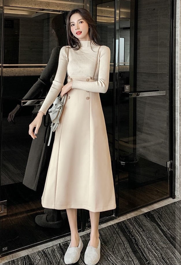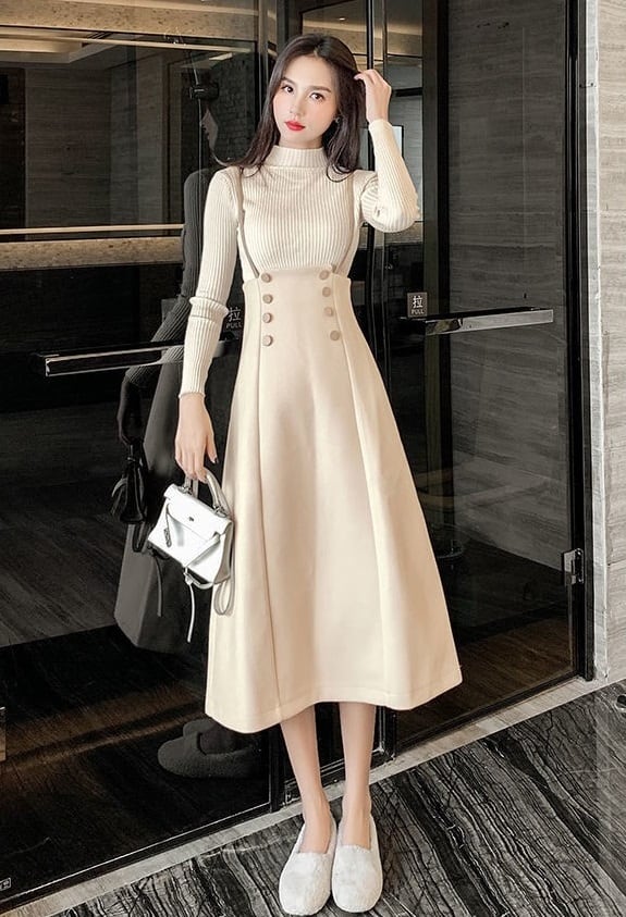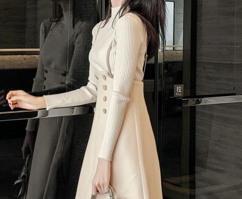 【送料無料】レディース ダブルブレスト サスペンダー スカート ツーピーススーツ セットアップ リブ ニット + ジャンスカ 2点セット リブ ニット 大人可愛い ママコーデ ママファッション 韓国 オルチャンファッション 人気 トレンド 新作 20代 30代 40代 きれいめ レトロ シンプル 無地 定番 お出かけ デート おしゃれ 通勤 通学 オフィス OL デイリー 普段着 ラフ カジュアル フェミニン シック ゆったり 体型カバー 着痩せ 着回し インスタ映え 秋 冬 春 CO1999