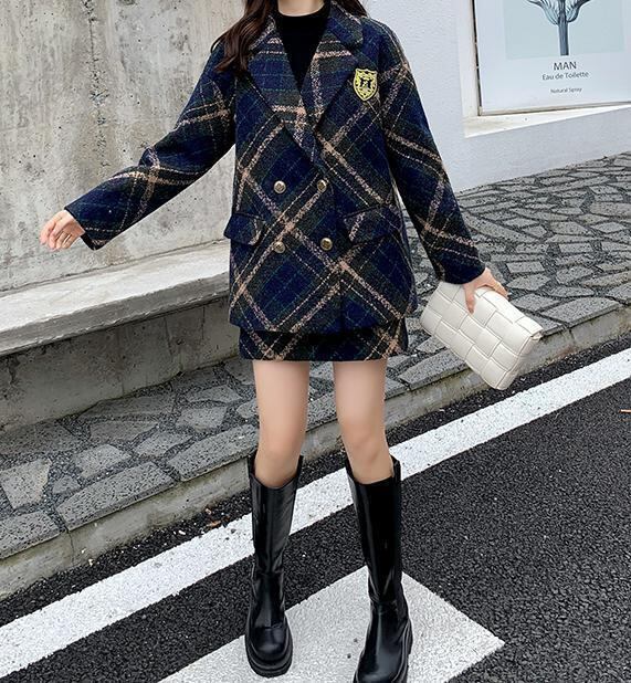 【送料無料】レディース セットアップ ジャケット + スカート 2点セット スーツ テーラード Pコート チェック 大人可愛い ママコーデ ママファッション 韓国 オルチャンファッション 人気 トレンド 新作 20代 30代 40代 きれいめ レトロ シンプル 無地 定番 お出かけ デート おしゃれ 通勤 通学 オフィス OL デイリー 普段着 ラフ カジュアル フェミニン シック ゆったり 体型カバー 着痩せ 着回し インスタ映え 秋 冬 春 CO2001