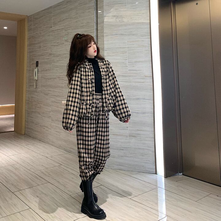 【送料無料】レディース セットアップ チェック柄 ジャケット パンツセット 2点セット 大人可愛い ママコーデ ママファッション 韓国 オルチャンファッション 人気 トレンド 新作 20代 30代 40代 きれいめ レトロ シンプル 無地 定番 お出かけ デート おしゃれ 通勤 通学 オフィス OL デイリー 普段着 ラフ カジュアル フェミニン シック ゆったり 体型カバー 着痩せ 着回し インスタ映え 秋 冬 春 CO2006
