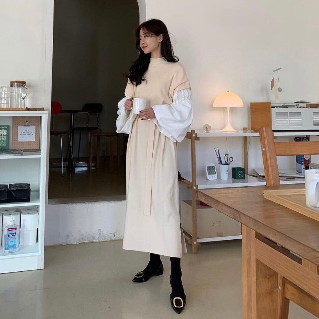 【送料無料】レディース コンビ リュクス パフスリーブ ロング ワンピース 2色 大人可愛い ママコーデ ママファッション 韓国 オルチャンファッション 人気 トレンド 新作 20代 30代 40代 きれいめ レトロ シンプル 無地 定番 お出かけ デート おしゃれ 通勤 通学 オフィス OL デイリー 普段着 ラフ カジュアル フェミニン シック ゆったり 体型カバー 着痩せ 着回し インスタ映え 秋 冬 春 CO2026