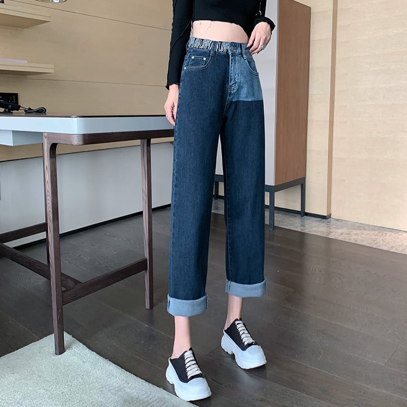【送料無料】レディース ハイウエスト パッチワーククロップ デニムパンツ 大人可愛い ママコーデ ママファッション 韓国 オルチャンファッション 人気 トレンド 新作 20代 30代 40代 きれいめ レトロ シンプル 無地 定番 お出かけ デート おしゃれ 通勤 通学 オフィス OL デイリー 普段着 ラフ カジュアル フェミニン シック ゆったり 体型カバー 着痩せ 着回し インスタ映え 秋 冬 春 夏 CO2031