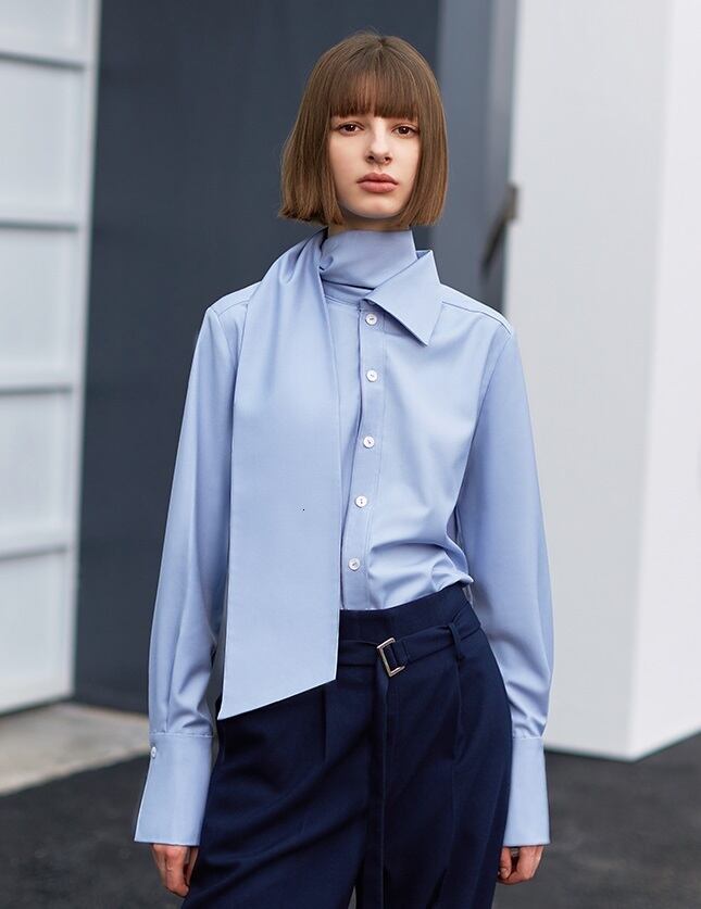 【送料無料】レディース 素敵 スカーフ ブルー 長袖 ルーズフィット シャツ ブラウス 大人可愛い ママコーデ ママファッション 韓国 オルチャンファッション 人気 トレンド 新作 20代 30代 40代 きれいめ レトロ シンプル 無地 定番 お出かけ デート おしゃれ 通勤 通学 オフィス OL デイリー 普段着 ラフ カジュアル フェミニン シック ゆったり 体型カバー 着痩せ 着回し インスタ映え 秋 春 CO2039