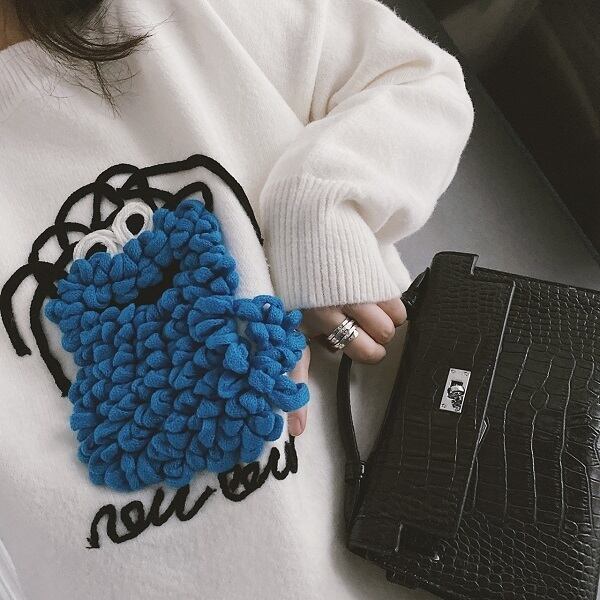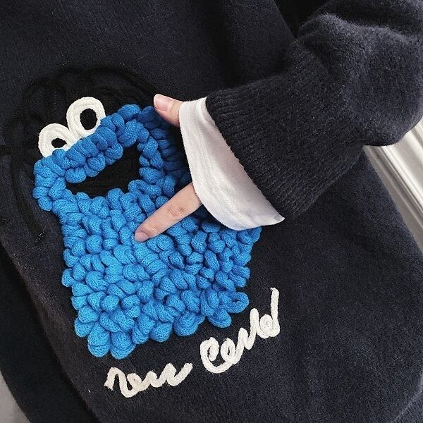 モコモコしたモンスターが可愛らしいニットトップス。