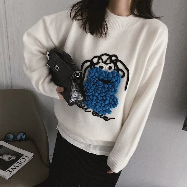 【送料無料】レディース ニット モンスター ロングスリーブ セーター 大人可愛い ママコーデ ママファッション 韓国 オルチャンファッション 人気 トレンド 新作 20代 30代 40代 きれいめ レトロ シンプル 無地 定番 お出かけ デート おしゃれ 通勤 通学 オフィス OL デイリー 普段着 ラフ カジュアル フェミニン シック ゆったり 体型カバー 着痩せ 着回し インスタ映え 秋 冬 CO2072