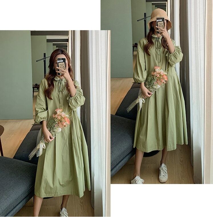 【送料無料】マタニティ シャツワンピース サイズ展開豊富 M~4XL ファッション 妊婦 長袖 無地 カジュアル エレガント 気質 折り襟 リボン フレア レディース 可愛い ママコーデ ママファッション ママ服 マタニティウェア 人気 ゆったり 大きいサイズ デイリー 普段着 お出かけ おしゃれ シンプル 無地 きれいめ フェミニン シック 体型カバー 着痩せ 着回し お宮参り マタニティフォト 通勤 妊婦服 産前 産後 秋 春 CO2083