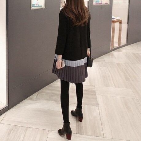 裾をプリーツ素材で切り替え、動くたびになびくデザインが目を惹くアイテム。