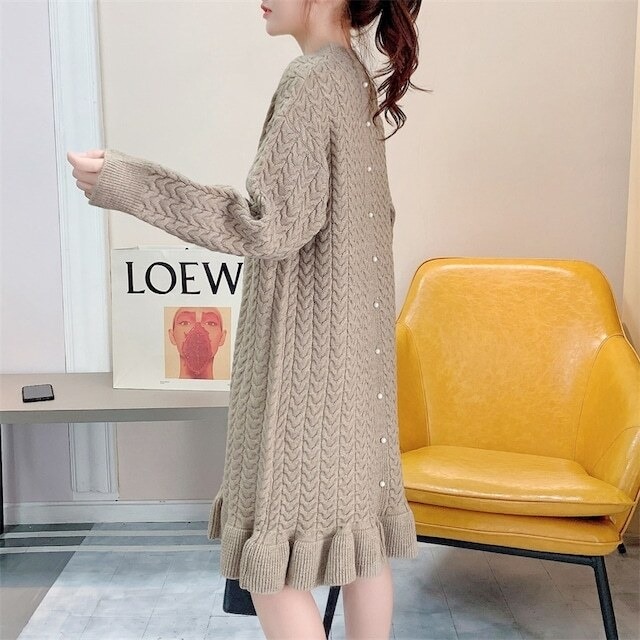 【送料無料】マタニティ ワンピース 膝丈 ガーリー ニットワンピース バックパール フリル レディース 可愛い ママコーデ ママファッション ママ服 マタニティウェア 人気 ゆったり 大きいサイズ デイリー 普段着 お出かけ おしゃれ シンプル 無地 きれいめ カジュアル フェミニン シック 体型カバー 着痩せ 着回し お宮参り マタニティフォト 通勤 妊婦服 産前 産後 秋 冬 CO2094