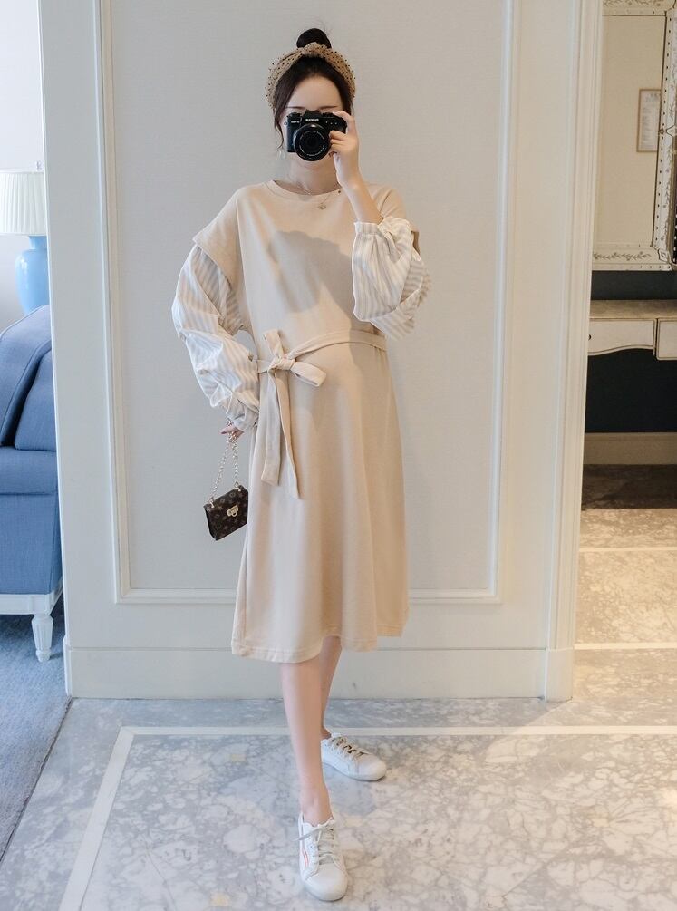 【送料無料】マタニティ ワンピース レイヤード風 ウエストリボン 長袖 ゆったり ドレス ロング レディース 可愛い ママコーデ ママファッション ママ服 マタニティウェア 人気 ゆったり 大きいサイズ デイリー 普段着 お出かけ おしゃれ シンプル 無地 きれいめ カジュアル フェミニン シック 体型カバー 着痩せ 着回し お宮参り マタニティフォト 通勤 妊婦服 産前 産後 秋 春 CO2102