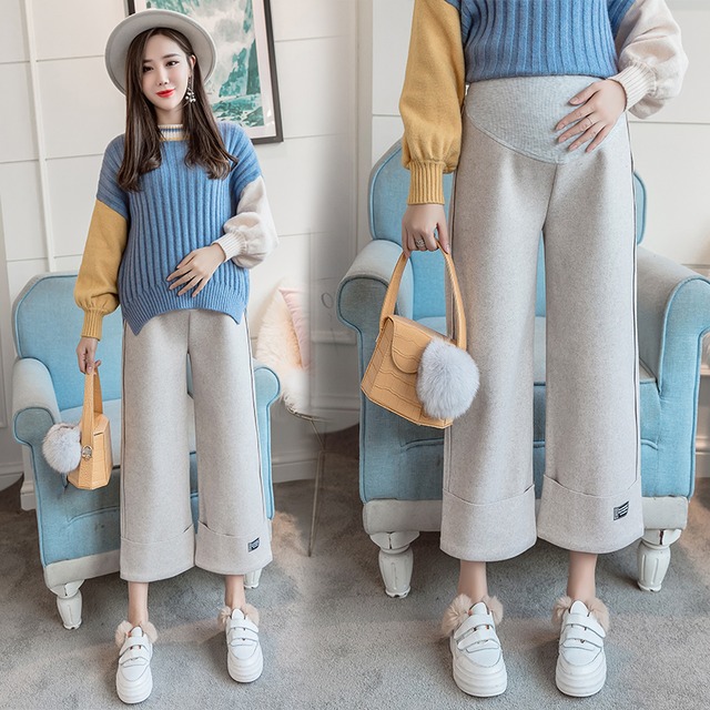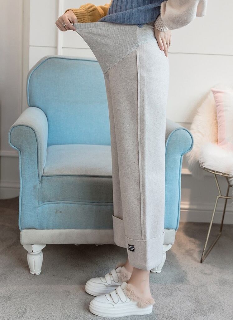 厚めの生地を使った暖かな履き心地のマタニティパンツ。