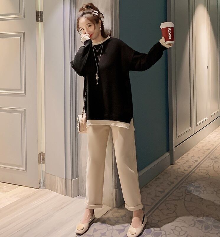 【送料無料】マタニティ 選べる3色 マタニティ セットアップ ニット 上下セット トップス + パンツ 2点セット ロング ピンク ブラック イエロー レディース 可愛い ママコーデ ママファッション ママ服 マタニティウェア 人気 ゆったり 大きいサイズ デイリー 普段着 お出かけ おしゃれ シンプル 無地 きれいめ カジュアル フェミニン シック 体型カバー 着痩せ 着回し お宮参り マタニティフォト 通勤 妊婦服 産前 産後 秋 冬 CO2129
