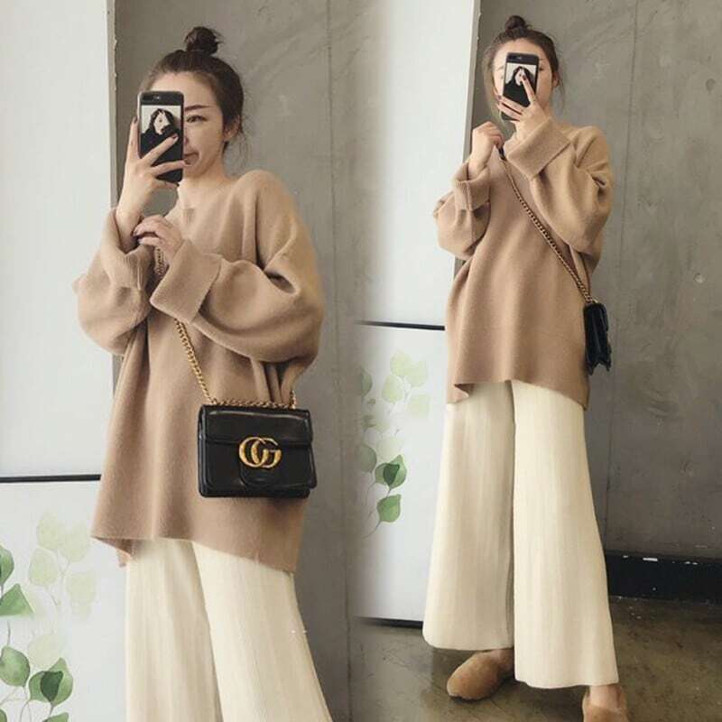 【送料無料】マタニティ ニット チュニック セットアップ 2点セット セーター + パンツ ツーピース 上下セット レディース 可愛い ママコーデ ママファッション ママ服 マタニティウェア 人気 ゆったり 大きいサイズ デイリー 普段着 お出かけ おしゃれ シンプル 無地 きれいめ カジュアル フェミニン シック 体型カバー 着痩せ 着回し お宮参り マタニティフォト 通勤 妊婦服 産前 産後 秋 冬 CO2130