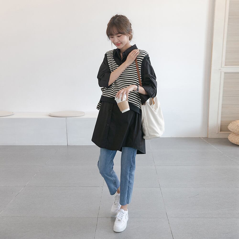【送料無料】マタニティ セットアップ シャツ + ベスト 2点セット Vネック サイドリボン スプリング レトロ 春物 秋物 レディース 可愛い ママコーデ ママファッション ママ服 マタニティウェア 人気 ゆったり 大きいサイズ デイリー 普段着 お出かけ おしゃれ シンプル 無地 きれいめ カジュアル フェミニン シック 体型カバー 着痩せ 着回し お宮参り マタニティフォト 通勤 妊婦服 授乳服 産前 産後 CO2154