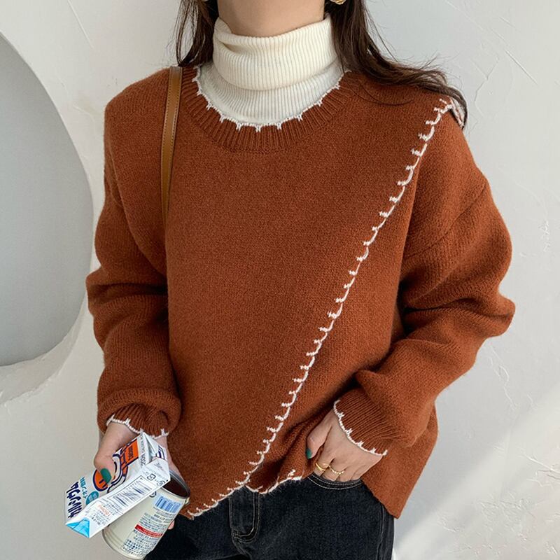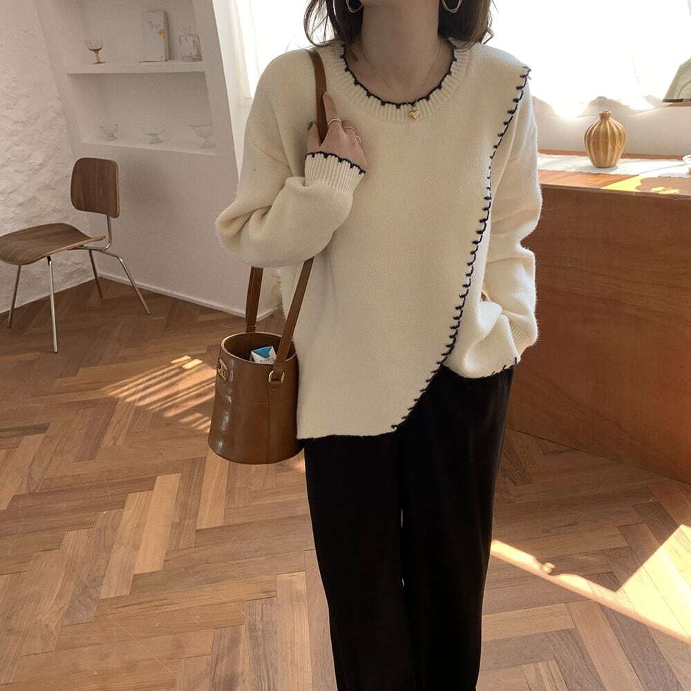 【送料無料】レディース 3色 トップス ニット 大人かわいい プルオーバー セーター ラウンドネック 長袖 ステッチ アシンメトリー 個性的 サイドスリット 大人可愛い ママコーデ ママファッション 韓国 オルチャンファッション 人気 トレンド 新作 20代 30代 40代 きれいめ レトロ シンプル 無地 定番 お出かけ デート おしゃれ 通勤 通学 オフィス OL デイリー 普段着 ラフ カジュアル フェミニン シック ゆったり 体型カバー 着痩せ 着回し インスタ映え 秋 冬 春 CO2378