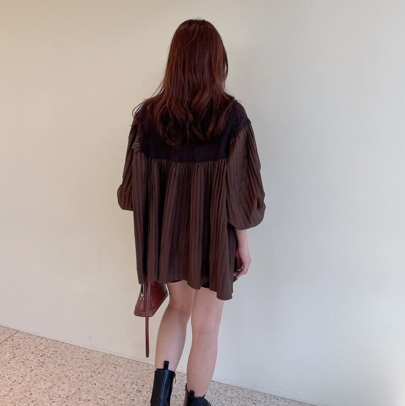 【送料無料】レディース ニット 異素材ミックス シフォン ブラウス プリーツ 切替 ガーリー 大人可愛い ママコーデ ママファッション 韓国 オルチャンファッション 人気 トレンド 新作 20代 30代 40代 きれいめ レトロ シンプル 無地 定番 お出かけ デート おしゃれ 通勤 通学 オフィス OL デイリー 普段着 ラフ カジュアル フェミニン シック ゆったり 体型カバー 着痩せ 着回し インスタ映え 秋 冬 春 CO2386