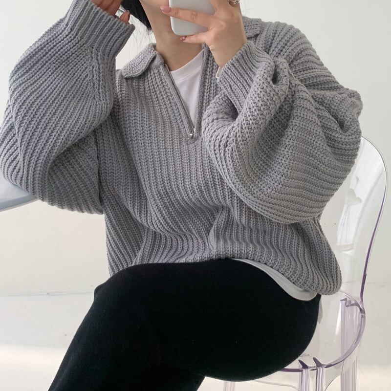 【送料無料】レディース ZIP オーバーサイズ ニット 大人可愛い ママコーデ ママファッション 韓国 オルチャンファッション 人気 トレンド 新作 20代 30代 40代 きれいめ レトロ シンプル 無地 定番 お出かけ デート おしゃれ 通勤 通学 オフィス OL デイリー 普段着 ラフ カジュアル フェミニン シック ゆったり 体型カバー 着痩せ 着回し インスタ映え 秋 冬 春 CO2388