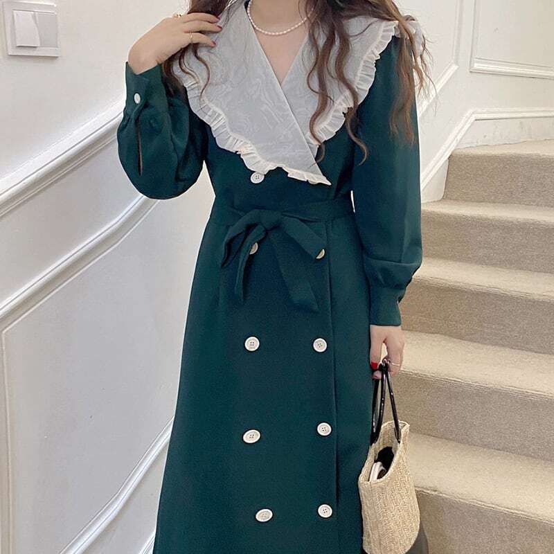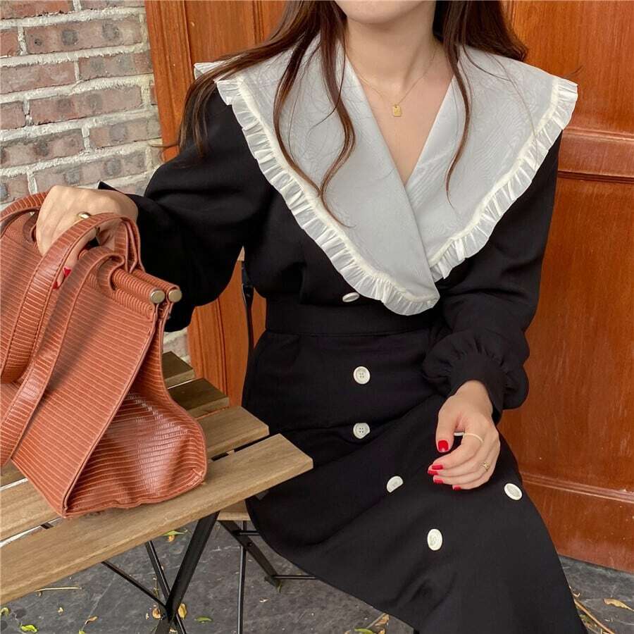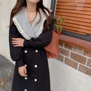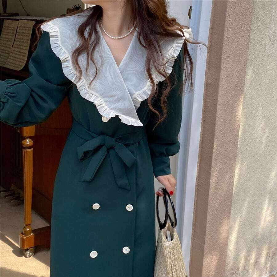 【送料無料】レディース ジャケット式 フリル襟 ロング ワンピース コートワンピース 2タイプ 大人可愛い ママコーデ ママファッション 韓国 オルチャンファッション 人気 トレンド 新作 20代 30代 40代 きれいめ レトロ シンプル 無地 定番 お出かけ デート おしゃれ 通勤 通学 オフィス OL デイリー 普段着 ラフ カジュアル フェミニン シック ゆったり 体型カバー 着痩せ 着回し インスタ映え 秋 冬 春 CO2390