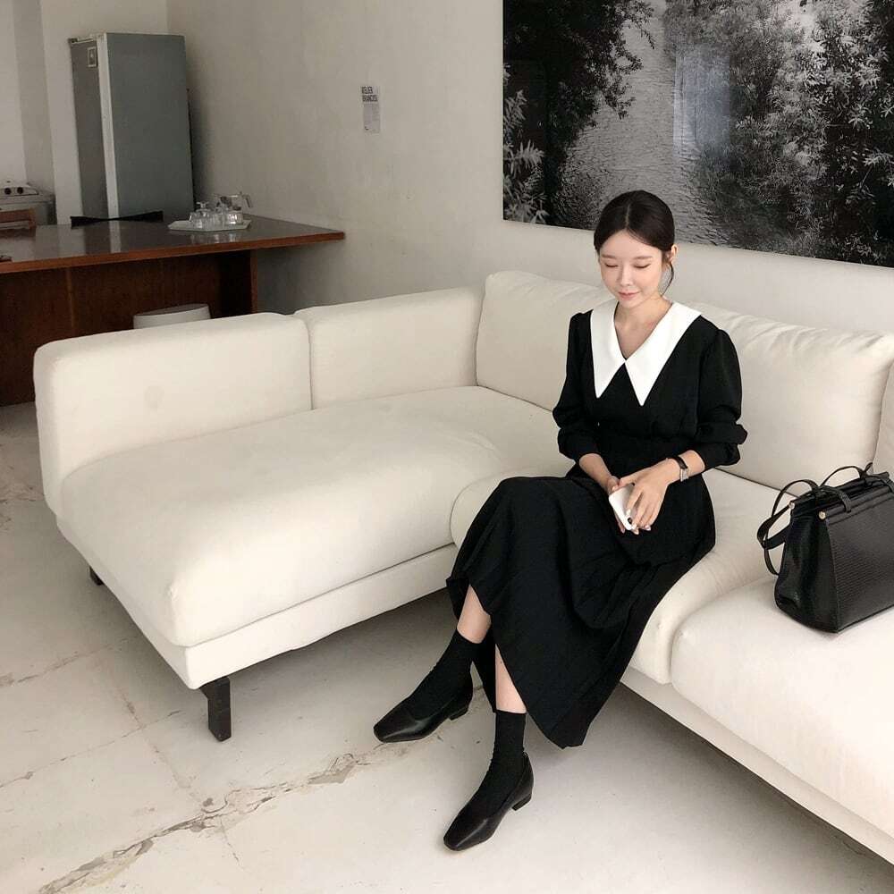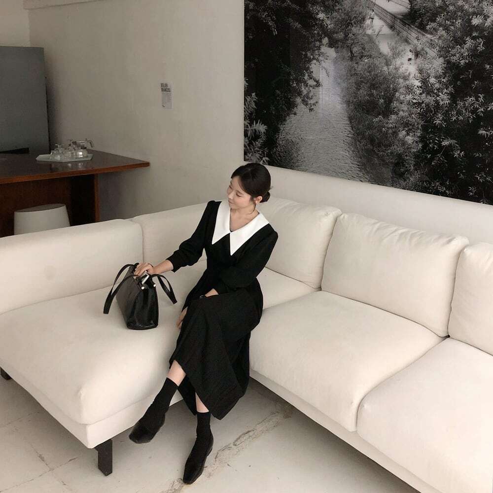 レトロクラシカルな雰囲気が漂うプリーツスカートワンピース。
