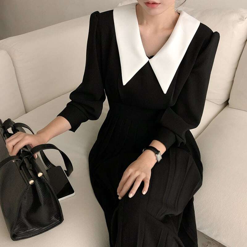 【送料無料】レディース Vネック ロングワンピース プリーツ パフスリーブ ワンピース 大人可愛い ママコーデ ママファッション 韓国 オルチャンファッション 人気 トレンド 新作 20代 30代 40代 きれいめ レトロ シンプル 無地 定番 お出かけ デート おしゃれ 通勤 通学 オフィス OL デイリー 普段着 ラフ カジュアル フェミニン シック ゆったり 体型カバー 着痩せ 着回し インスタ映え 秋 冬 春 CO2391