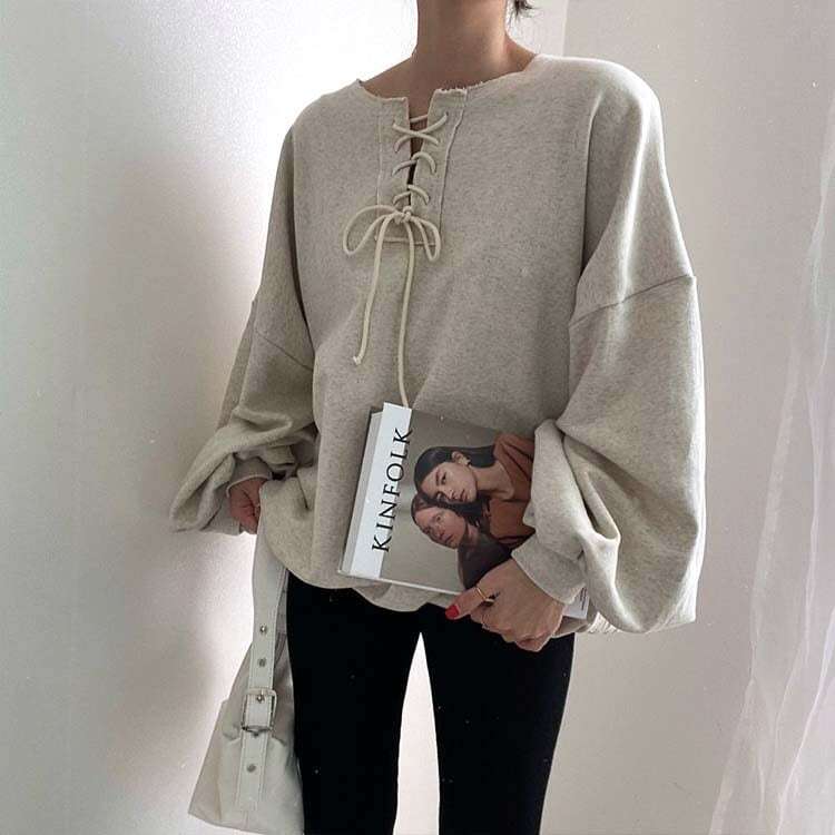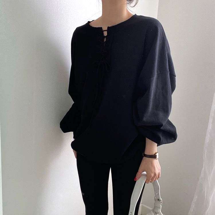 【送料無料】レディース レースアップ ランタンスリーブ スウェット トレーナー パフスリーブ 大人可愛い ママコーデ ママファッション 韓国 オルチャンファッション 人気 トレンド 新作 20代 30代 40代 きれいめ レトロ シンプル 無地 定番 お出かけ デート おしゃれ 通勤 通学 オフィス OL デイリー 普段着 ラフ カジュアル フェミニン シック ゆったり 体型カバー 着痩せ 着回し インスタ映え 秋 冬 春 CO2394