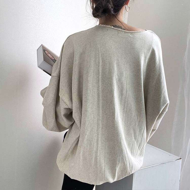ドロップショルダーにぽわんとした大きな袖がおしゃれなトレーナー。