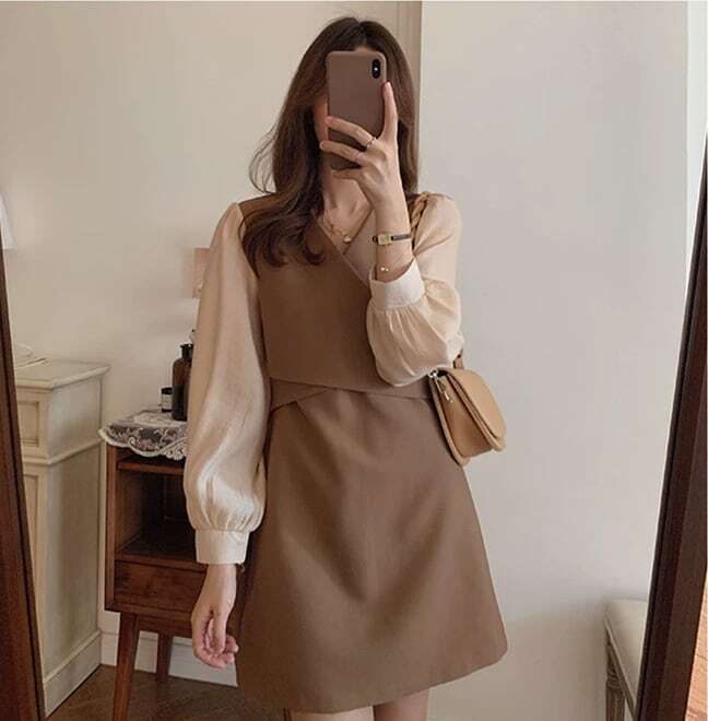 【送料無料】レディース 美人度アップ Vネック エレガント 切り替え 2色 デート ワンピース 大人可愛い ママコーデ ママファッション 韓国 オルチャンファッション 人気 トレンド 新作 20代 30代 40代 きれいめ レトロ シンプル 無地 定番 お出かけ デート おしゃれ 通勤 通学 オフィス OL デイリー 普段着 ラフ カジュアル フェミニン シック ゆったり 体型カバー 着痩せ 着回し インスタ映え 秋 冬 春 CO2395