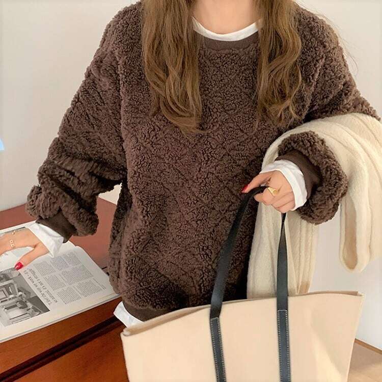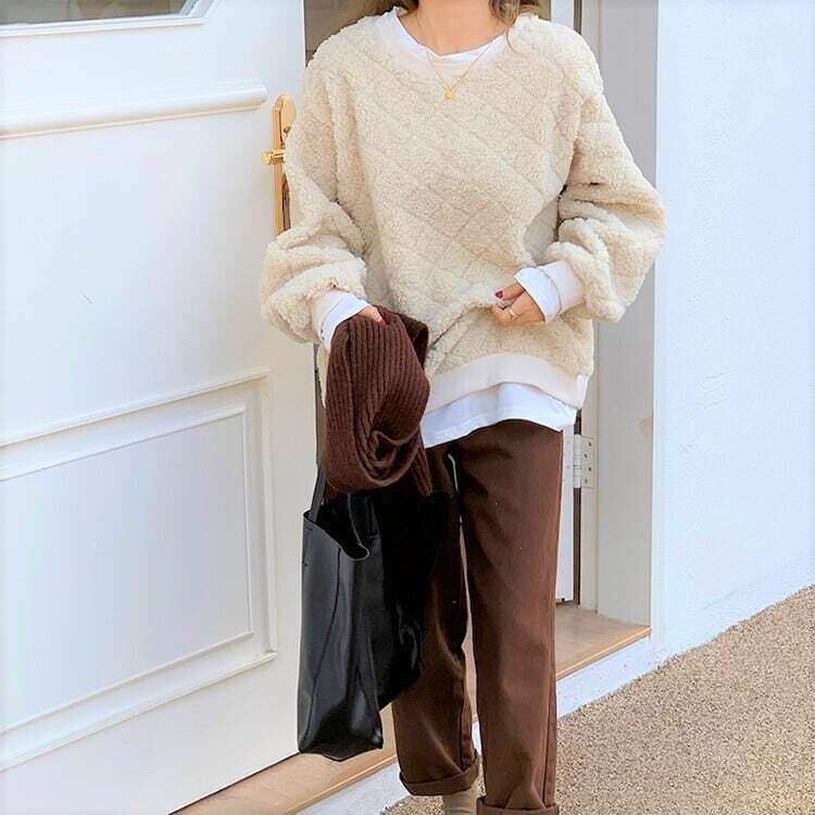 【送料無料】レディース ナチュかわ ラテカラー ボア プルオーバー スウェット もこもこ オーバーサイズ ナチュラル フェミカジ 愛されコーデ 大人可愛い ママコーデ ママファッション 韓国 オルチャンファッション 人気 トレンド 新作 20代 30代 40代 きれいめ レトロ シンプル 無地 定番 お出かけ デート おしゃれ 通勤 通学 オフィス OL デイリー 普段着 ラフ カジュアル フェミニン シック ゆったり 体型カバー 着痩せ 着回し インスタ映え 秋 冬 CO2405