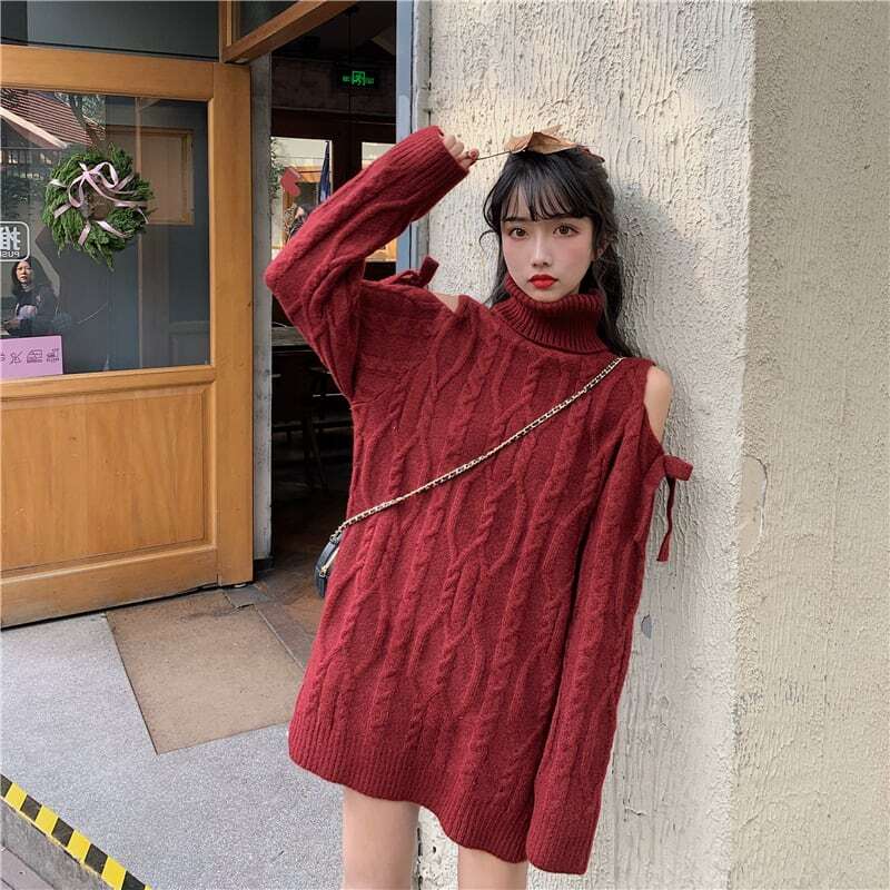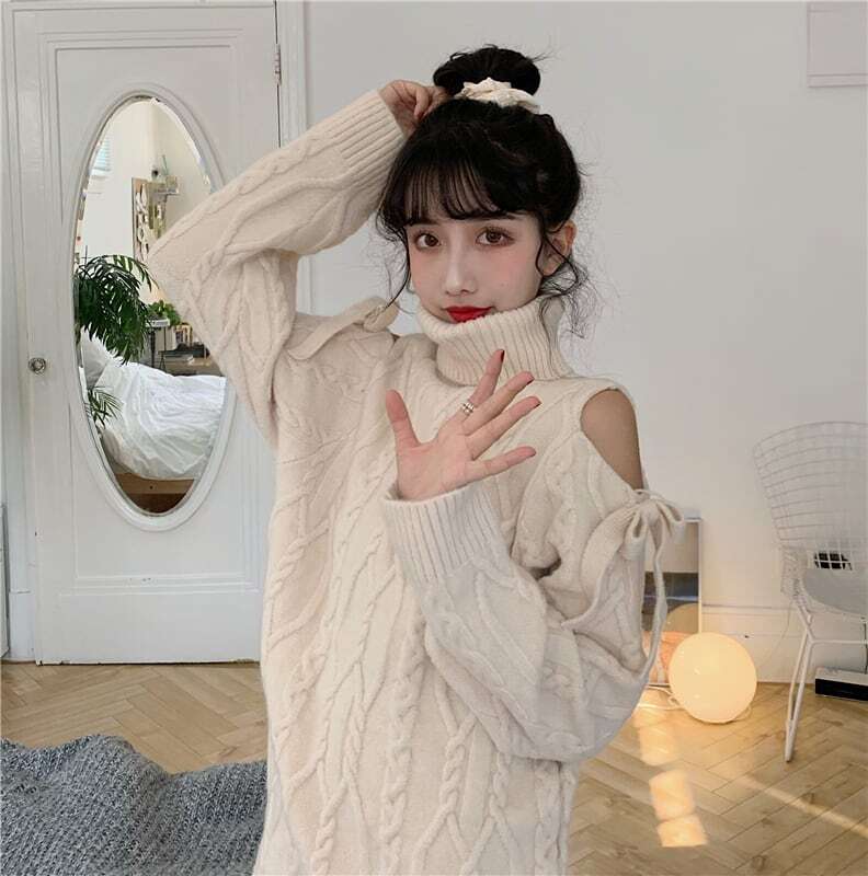 【送料無料】レディース ガーリー セクシー オープンショルダー フェミニン リボン ミディ丈 ケーブル編み タートルネック ニット セーター トップス 大人可愛い ママコーデ ママファッション 韓国 オルチャンファッション 人気 トレンド 新作 20代 30代 40代 きれいめ レトロ シンプル 無地 定番 お出かけ デート おしゃれ 通勤 通学 オフィス OL デイリー 普段着 ラフ カジュアル フェミニン シック ゆったり 体型カバー 着痩せ 着回し インスタ映え 秋 冬 春 CO2409