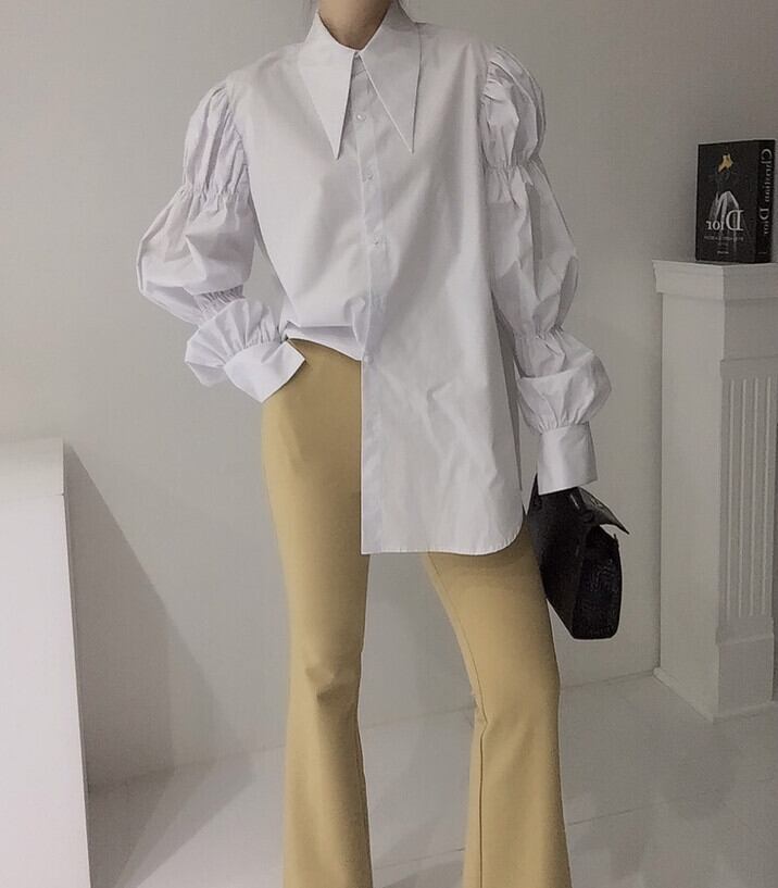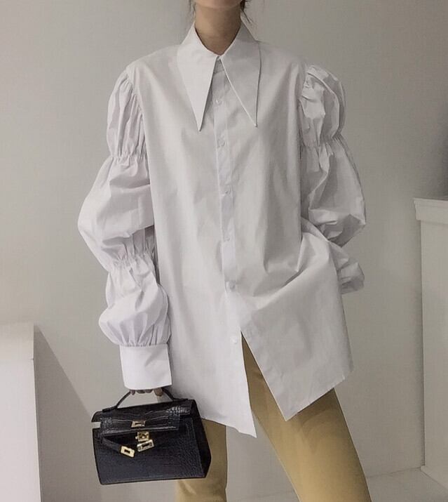 【送料無料】レディース 2カラー シャツ ブラウス デザインスリーブ 大きめ襟 ロング丈 大人可愛い ママコーデ ママファッション 韓国 オルチャンファッション 人気 トレンド 新作 20代 30代 40代 お出かけ デート おしゃれ 通勤 通学 オフィス OL デイリー 普段着 ラフ カジュアル フェミニン シック ゆったり 体型カバー 着痩せ 着回し インスタ映え 春 秋 CO2574