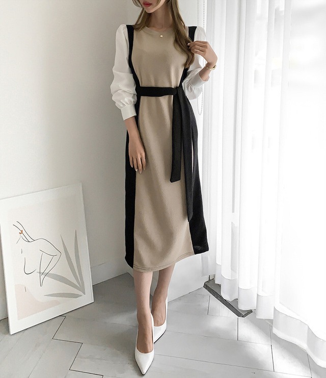 【送料無料】レディース 2カラー ニットワンピース Aライン パフスリーブ 切り替え バイカラー 大人可愛い ママコーデ ママファッション 韓国 オルチャンファッション 人気 トレンド 新作 20代 30代 40代 きれいめ レトロ シンプル 定番 お出かけ デート おしゃれ 通勤 通学 オフィス OL デイリー 普段着 ラフ カジュアル フェミニン シック ゆったり 体型カバー 着痩せ 着回し インスタ映え 春 秋 冬 CO2579