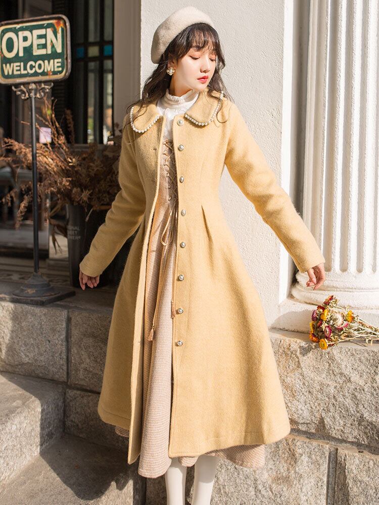 【送料無料】レディース コート ビッグカラー 大きめ襟 パール風ボタン ロング丈 フレア Aライン 大人可愛い ママコーデ ママファッション 韓国 オルチャンファッション 人気 トレンド 新作 20代 30代 40代 きれいめ レトロ シンプル 定番 お出かけ デート おしゃれ 通勤 通学 オフィス OL デイリー 普段着 ラフ カジュアル フェミニン シック ゆったり 体型カバー 着痩せ 着回し インスタ映え 秋 冬 CO2581