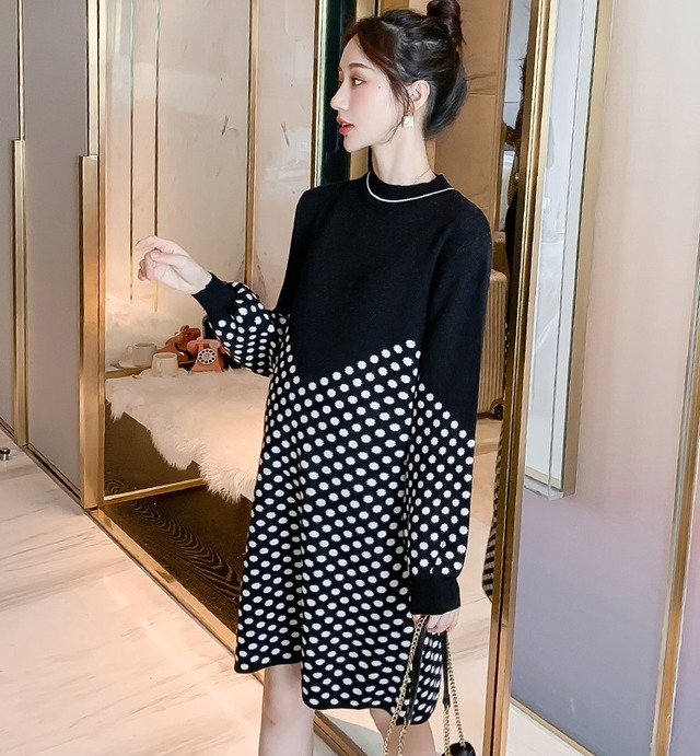 【送料無料】マタニティ ドット ニット ワンピース パフスリーブ バイカラー レディース 可愛い ママコーデ ママファッション ママ服 マタニティウェア 人気 ゆったり 大きいサイズ デイリー 普段着 お出かけ おしゃれ シンプル 無地 きれいめ カジュアル フェミニン シック 体型カバー 着痩せ 着回し お宮参り マタニティフォト 通勤 妊婦服 産前 産後 秋 冬 CO2427