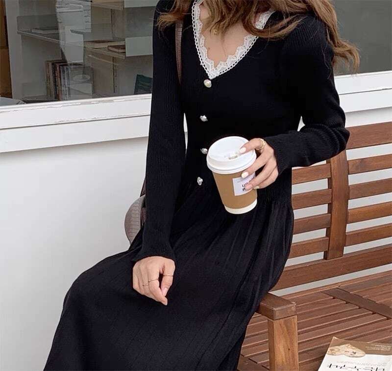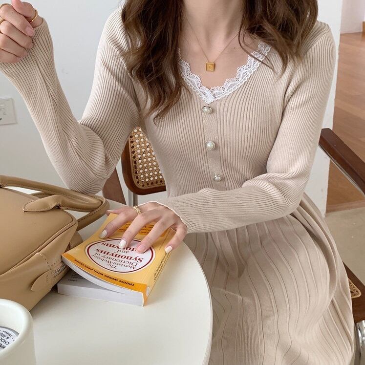 【送料無料】マタニティ 授乳服 授乳口付き 産前産後使える レース襟 リブ ニット ワンピース Vネック パールボタン レディース 可愛い ママコーデ ママファッション ママ服 マタニティウェア 人気 ゆったり 大きいサイズ デイリー 普段着 お出かけ おしゃれ シンプル 無地 きれいめ カジュアル フェミニン シック 体型カバー 着痩せ 着回し お宮参り マタニティフォト 通勤 妊婦服 産前 産後 秋 冬 春 CO2436