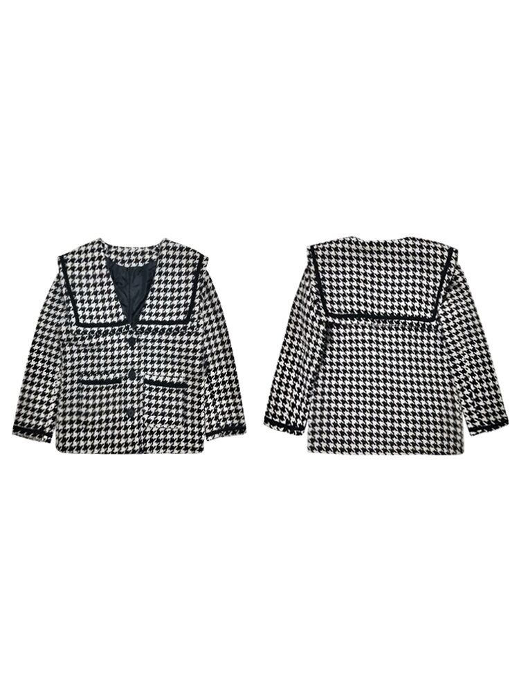 【送料無料】レディース コート セラーカラー 千鳥格子柄 ジャケット 大人可愛い ママコーデ ママファッション 韓国 オルチャンファッション 人気 トレンド 新作 20代 30代 40代 きれいめ レトロ シンプル 定番 お出かけ デート おしゃれ 通勤 通学 オフィス OL デイリー 普段着 ラフ カジュアル フェミニン シック ゆったり 体型カバー 着痩せ 着回し インスタ映え 秋 冬 CO2596