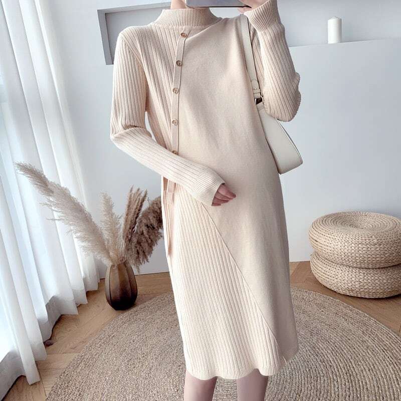 【送料無料】マタニティ ワンピース 膝丈 長袖 ストレート アシンメトリー ウエストリボン フェイクラップ ニットワンピース レディース 可愛い ママコーデ ママファッション ママ服 マタニティウェア 人気 ゆったり 大きいサイズ デイリー 普段着 お出かけ おしゃれ シンプル 無地 きれいめ カジュアル フェミニン シック 体型カバー 着痩せ 着回し お宮参り マタニティフォト 通勤 妊婦服 産前 産後 秋 冬 CO2439