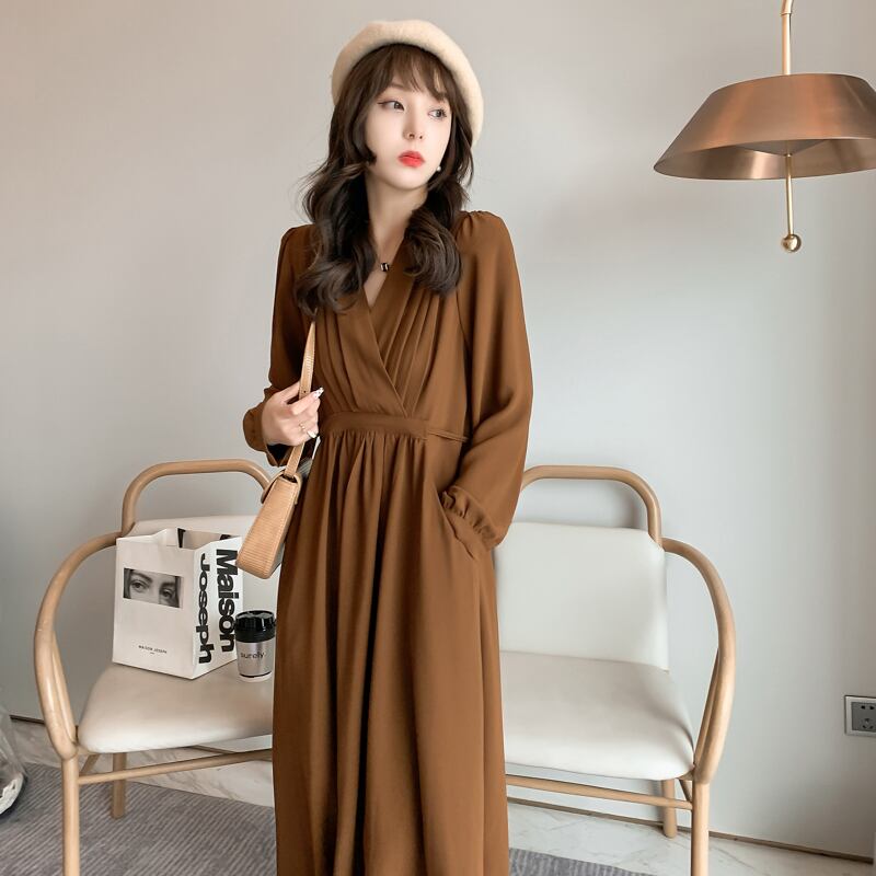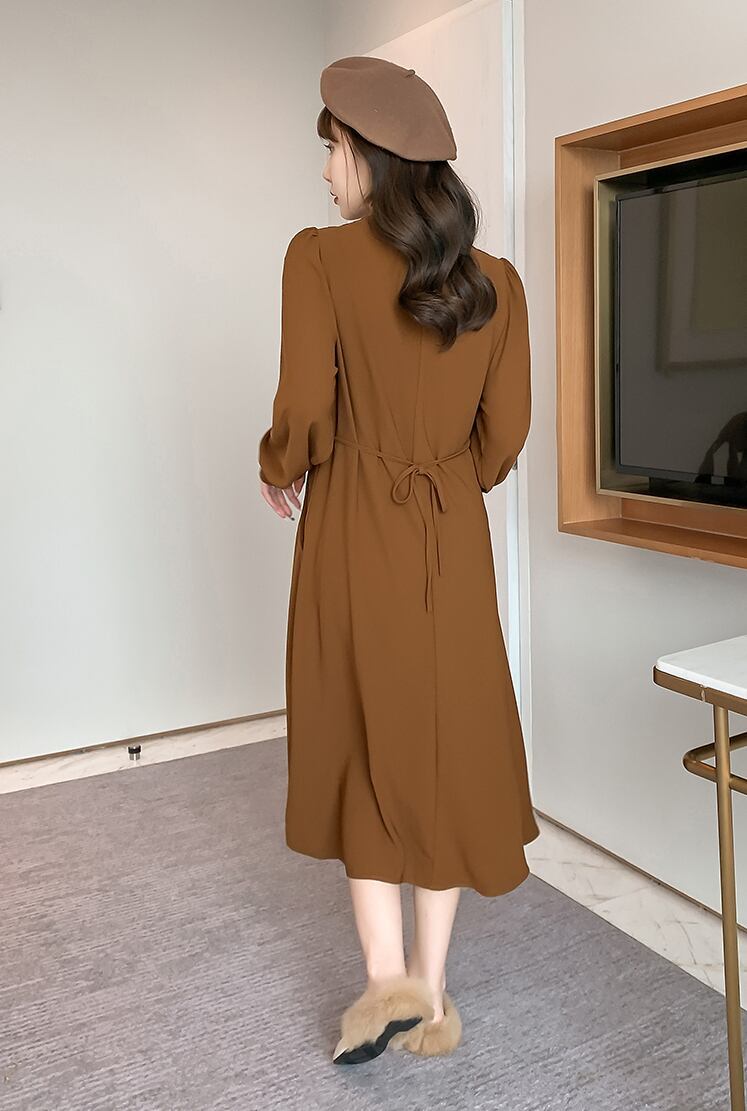 【送料無料】マタニティ ワンピース 九分丈 長袖 フレア ストレート Vネック パフスリーブ レディース 可愛い ママコーデ ママファッション ママ服 マタニティウェア 人気 ゆったり 大きいサイズ デイリー 普段着 お出かけ おしゃれ シンプル 無地 きれいめ カジュアル フェミニン シック 体型カバー 着痩せ 着回し お宮参り マタニティフォト 通勤 妊婦服 産前 産後 秋 春 CO2448