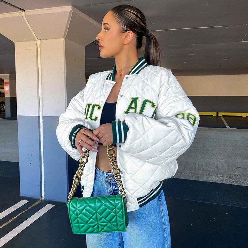 【送料無料】レディース 2カラー スタジャン ブルゾン キルティング ロゴ 大人可愛い ママコーデ ママファッション 韓国 オルチャンファッション 人気 トレンド 新作 20代 30代 40代 レトロ シンプル 定番 お出かけ デート おしゃれ 通勤 通学 オフィス OL デイリー 普段着 ラフ カジュアル ゆったり 体型カバー 着痩せ 着回し インスタ映え 春 秋 冬 CO2613