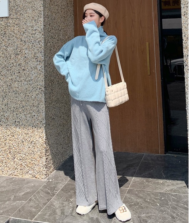 【送料無料】マタニティ ケーブル編み ニット パンツ ワイドパンツ レディース 可愛い ママコーデ ママファッション ママ服 マタニティウェア 人気 ゆったり 大きいサイズ デイリー 普段着 お出かけ おしゃれ シンプル 無地 きれいめ カジュアル フェミニン シック 体型カバー 着痩せ 着回し お宮参り マタニティフォト 通勤 妊婦服 産前 産後 秋 冬 春 CO2468