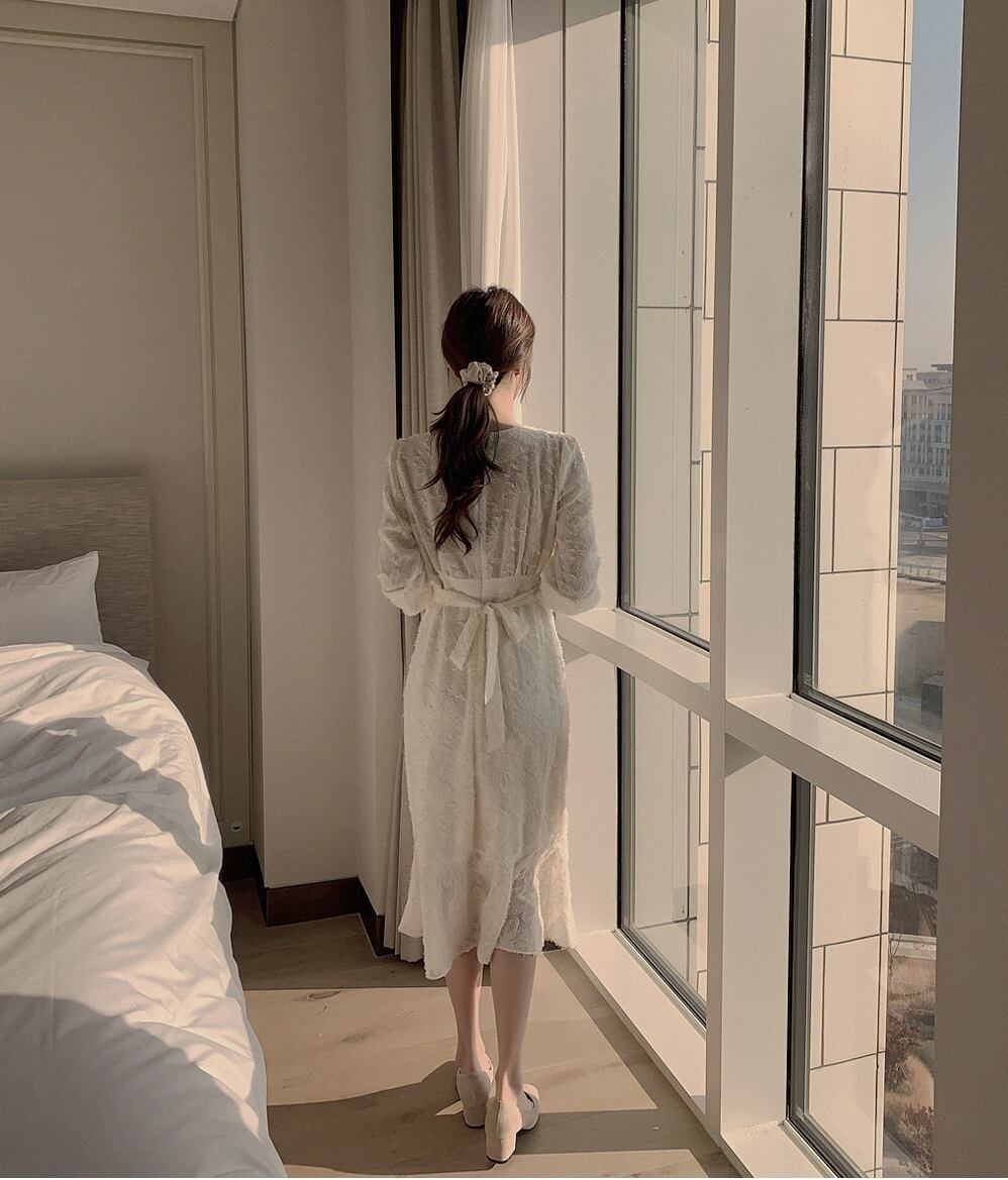 【送料無料】レディース 2カラー ドレス ワンピース 総レース 長袖 Vネック フレア バックリボン パーティー 大人可愛い ママコーデ ママファッション 韓国 オルチャンファッション 人気 トレンド 新作 20代 30代 40代 きれいめ レトロ シンプル 定番 お出かけ デート おしゃれ フェミニン シック 着痩せ 着回し インスタ映え 春 夏 秋 冬 CO2622