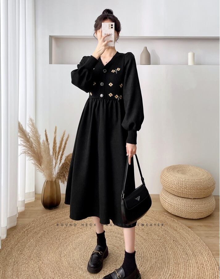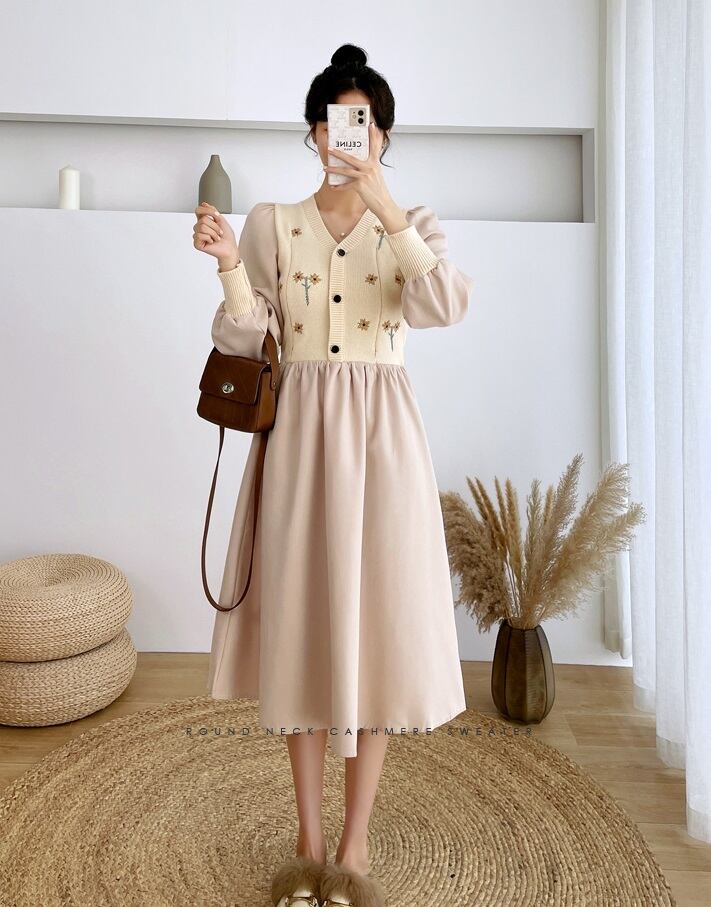 【送料無料】マタニティ ワンピース 授乳口付き Vネック フラワー刺しゅうハイウエスト バックリボン レディース 可愛い ママコーデ ママファッション ママ服 マタニティウェア 人気 ゆったり 大きいサイズ デイリー 普段着 お出かけ おしゃれ シンプル 無地 きれいめ カジュアル フェミニン シック 体型カバー 着痩せ 着回し お宮参り マタニティフォト 通勤 妊婦服 授乳服 産前 産後 秋 冬 CO2488