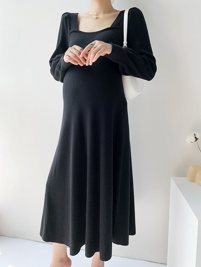 【送料無料】マタニティ ワンピース ニット スクエアネック パフスリーブ フレア 2色 レディース 可愛い ママコーデ ママファッション ママ服 マタニティウェア 人気 ゆったり 大きいサイズ デイリー 普段着 お出かけ おしゃれ シンプル 無地 きれいめ カジュアル フェミニン シック 体型カバー 着痩せ 着回し お宮参り マタニティフォト 通勤 妊婦服 産前 産後 秋 冬 CO2490