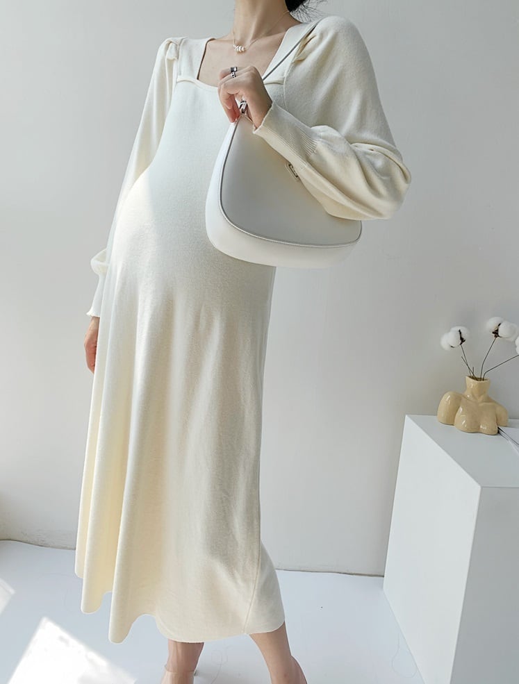 トレンド気分が詰まったフェミニンなマタニティワンピース。