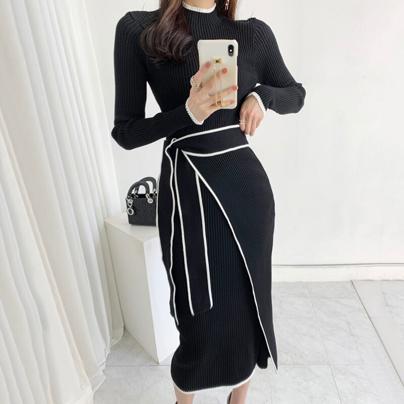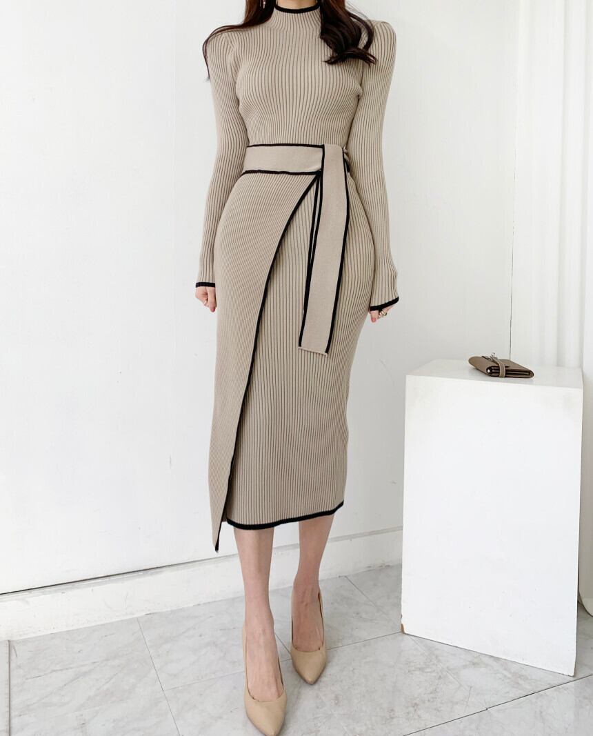 【送料無料】レディース 2カラー ニットワンピース ウエストリボン バイカラー スリムリブ ペンシルスカート 大人可愛い ママコーデ ママファッション 韓国 オルチャンファッション 人気 トレンド 新作 20代 30代 40代 きれいめ レトロ シンプル 定番 お出かけ デート おしゃれ 通勤 通学 オフィス OL デイリー 普段着 フェミニン シック 着回し インスタ映え 秋 冬 CO2630
