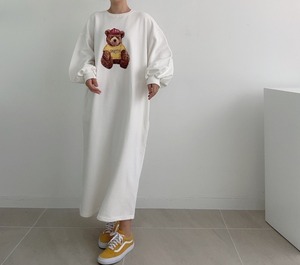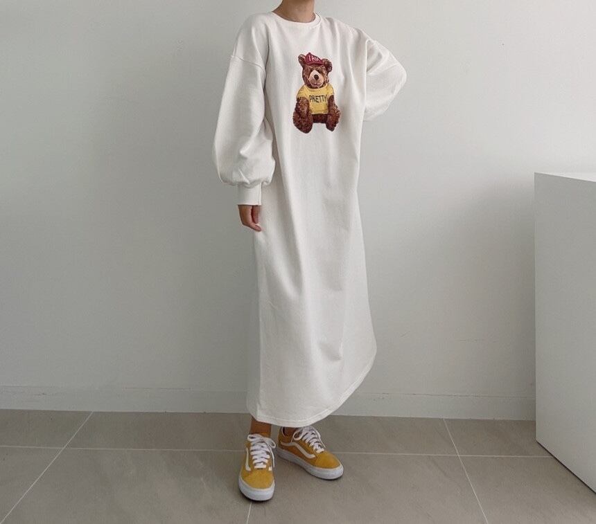 【送料無料】レディース 3カラー スウェットワンピース クマ ベア bear プリント 長袖 スウェット ロング丈 ロングワンピ ルーズ 大人可愛い ママコーデ ママファッション 韓国 オルチャンファッション 人気 トレンド 新作 20代 30代 40代 レトロ シンプル 定番 お出かけ デート おしゃれ 通学 OL デイリー 普段着 ラフ カジュアル フェミニン ゆったり 体型カバー 着痩せ 着回し インスタ映え 春 秋 冬 CO2635