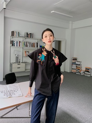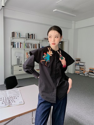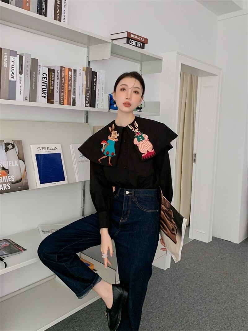 【送料無料】レディース シャツ ブラウス ビッグカラー 大きめ襟 うさぎ ウサギ ラビット 長袖 ブラック 大人可愛い ママコーデ ママファッション 韓国 オルチャンファッション 人気 トレンド 新作 20代 30代 40代 きれいめ レトロ シンプル 定番 お出かけ デート おしゃれ 通勤 通学 オフィス OL デイリー 普段着 ラフ カジュアル フェミニン シック ゆったり 体型カバー 着痩せ 着回し インスタ映え 春 秋 冬 CO2636