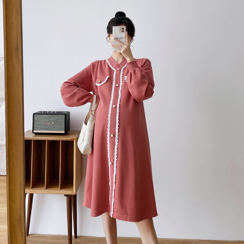 【送料無料】マタニティ ワンピース レース パールボタン パフスリーブ レディース 可愛い ママコーデ ママファッション ママ服 マタニティウェア 人気 ゆったり 大きいサイズ デイリー 普段着 お出かけ おしゃれ シンプル 無地 きれいめ カジュアル フェミニン シック 体型カバー 着痩せ 着回し お宮参り マタニティフォト 通勤 妊婦服 産前 産後 秋 冬 CO2518