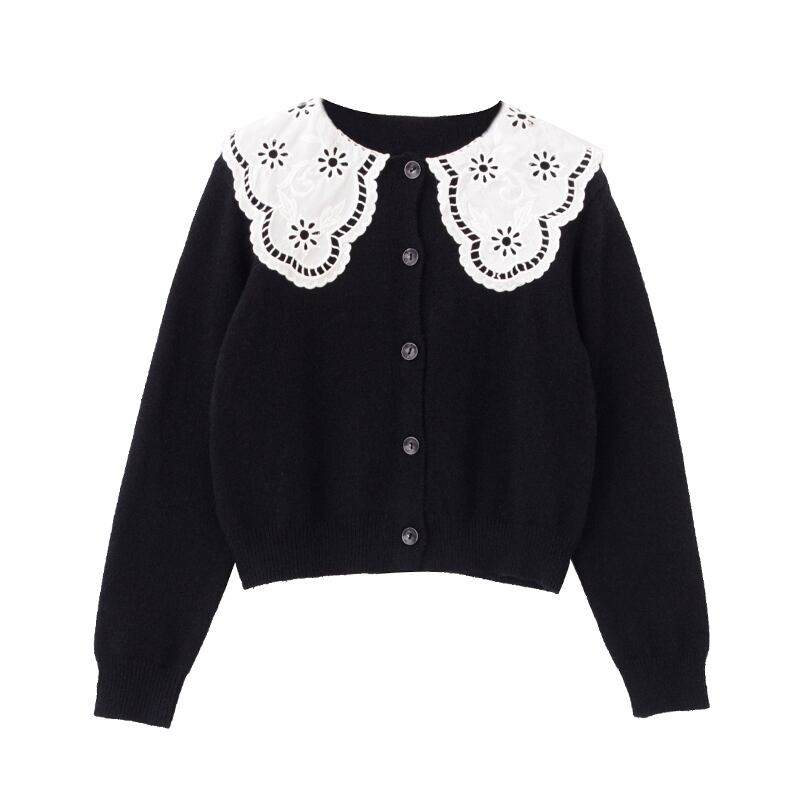 【送料無料】レディース カーディガン 襟付き レース 長袖 ブラック ガーリー 大人可愛い ママコーデ ママファッション 韓国 オルチャンファッション 人気 トレンド 新作 20代 30代 40代 きれいめ レトロ シンプル 定番 お出かけ デート おしゃれ 通勤 通学 オフィス OL デイリー 普段着 ラフ カジュアル フェミニン シック ゆったり 体型カバー 着痩せ 着回し インスタ映え 春 秋 冬 CO2644