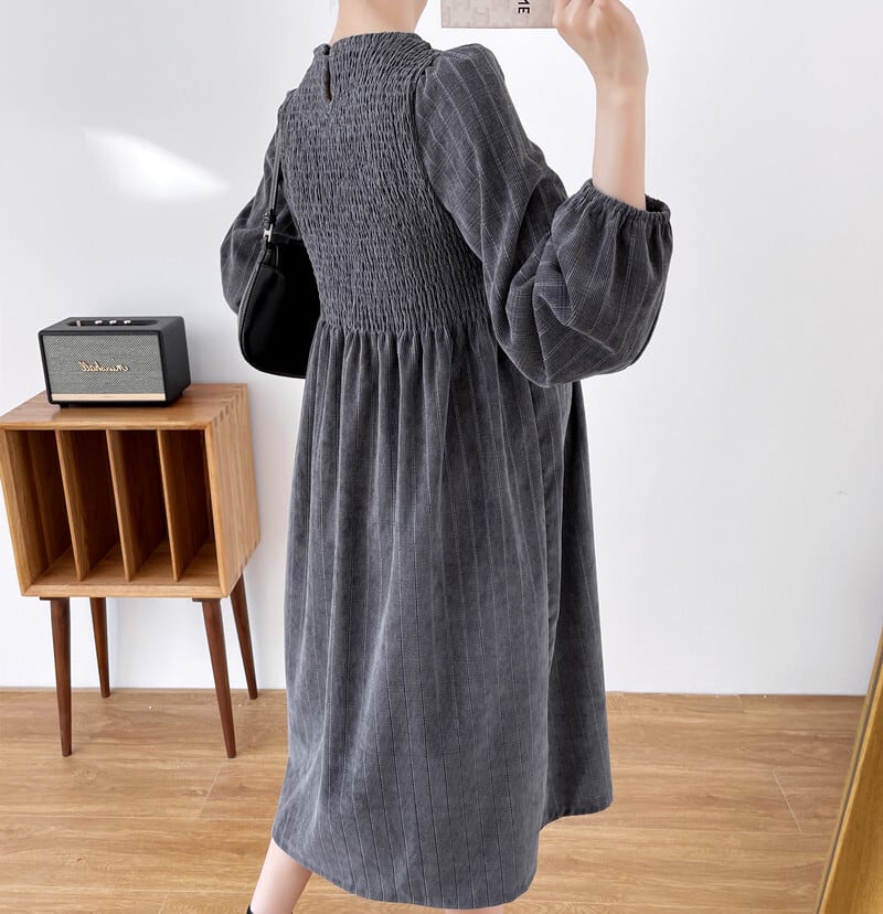【送料無料】マタニティ ワンピース シャーリング ラウンドネック パフスリーブ ストライプ レディース 可愛い ママコーデ ママファッション ママ服 マタニティウェア 人気 ゆったり 大きいサイズ デイリー 普段着 お出かけ おしゃれ シンプル 無地 きれいめ カジュアル フェミニン シック 体型カバー 着痩せ 着回し お宮参り マタニティフォト 通勤 妊婦服 産前 産後 秋 冬 CO2523